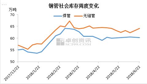 六月,鋼管的庫存水平呈小幅上升狀態(tài),最根本原因在于6月鋼材需求的疲軟,導致庫存消化慢。