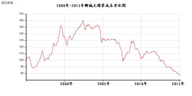 2000年-2015年原材料價格一直在降,2014年下半年至今原材料幾乎降到了歷史最低,聊城無縫管廠家的成本無疑也是在降低,圖下圖所示: